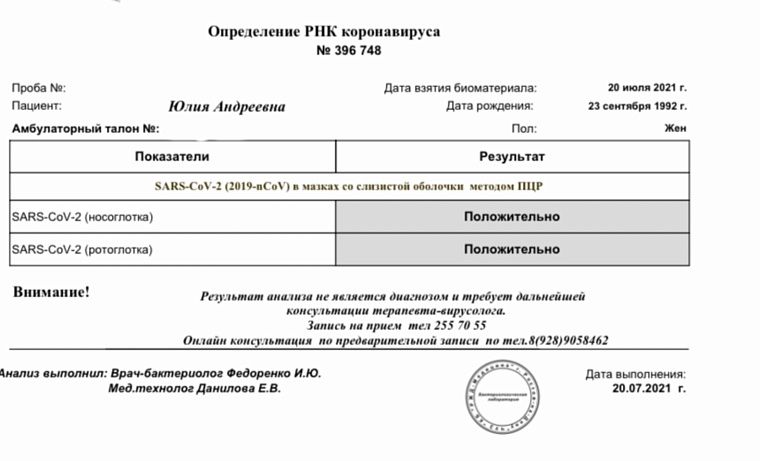 В тот день я пережила все пять стадий принятия: отрицание, гнев, торг, депрессия, смирение. Немного успокоившись, я позвонила своему гинекологу, но как я только начала говорить о своей болезни, разревелась. Она постаралась успокоить меня и сказала, какие таблетки можно принимать. Потом я позвонила в детскую поликлинику, чтобы сообщить, что моя шестилетняя дочь контактная, и во взрослую, чтобы сообщить это же о моём муже. На следующий день дочке взяли мазок, который в субботу пришёл положительным. К слову, она перенесла болезнь достаточно легко, только немного посопливила. А вот врача из взрослой поликлиники мы так и не дождались. Хотя на тот момент муж слёг с температурой за 39 и жутким кашлем. В итоге ему пришлось самому ехать платно сдавать тест, и он оказался отрицательным. Мы предполагаем, что на тот момент вся зараза уже опустилась в лёгкие, поэтому так вышло. За неделю муж пришёл в норму, мы с дочкой тоже чувствовали себя гораздо лучше.