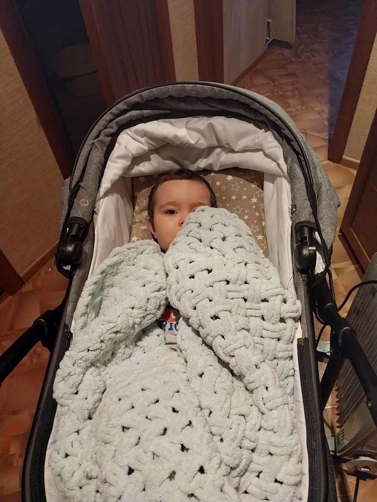 В университетские годы я бросила вязать, так как не было времени. А во время работы я занималась собой, и вязать особо не хотелось. Но в период беременности у меня появилось много свободного времени, я снова начала вязать, но вязала уже для своих малышей. На просторах интернета увидела, как вяжут из пряжи Alizze Puffi. Вязка ручная без каких-либо спиц и крючков. Я загорелась желанием научиться так вязать, и связать пару одеял, что я и сделала. О своём намерении я рассказала мужу и близким родственникам. Все были не против, только бабушки грозно заявляли, что не благо заниматься вязанием в беременность. Помню слова бабушки: «Будешь вязать, ребёнок родится с обвитием и может задохнуться». Я не побоялась этих слов и продолжала вязать, мне это нравилось. Однако, стоит заметить, что женщинам и правда нельзя вязать, но только совсем по другой причине.
