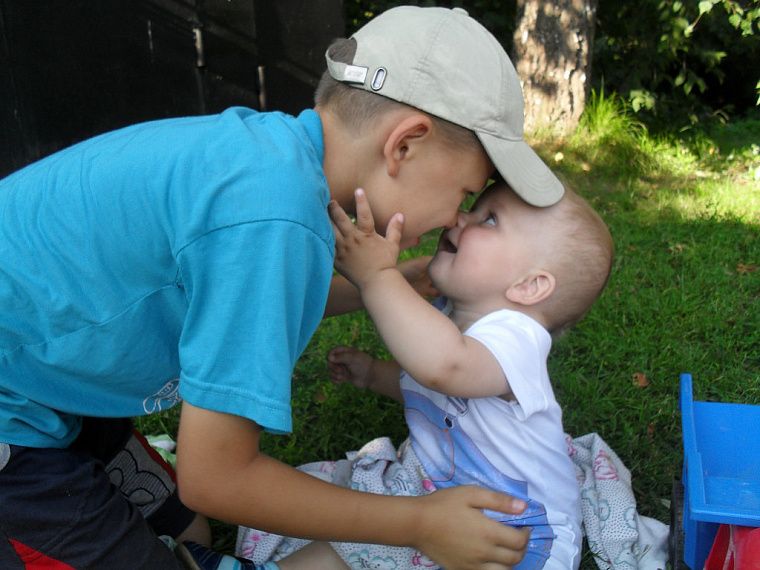 В положенный срок родился в нашей семье славный мальчишка Денис, и стали по всему дому валяться самолётики, паровозики и машинки без колёс. Всё, как муж мечтал. Дочки катали его в коляске по очереди и во всём мне помогали. А через 10 лет Бог нам послал ещё одного сына. Стали мы на целого малыша счастливее. Причём, сначала у нас родился внук, а через 9 месяцев – младший сын. Сейчас ему 7 лет, а внуков у нас уже трое. Точнее, пока трое. Ждём ещё, и не одного. На фото наши младшие сыночки. Надеюсь, когда они вырастут, то будут так же дружить всю жизнь.