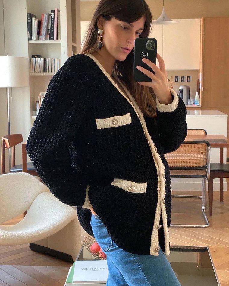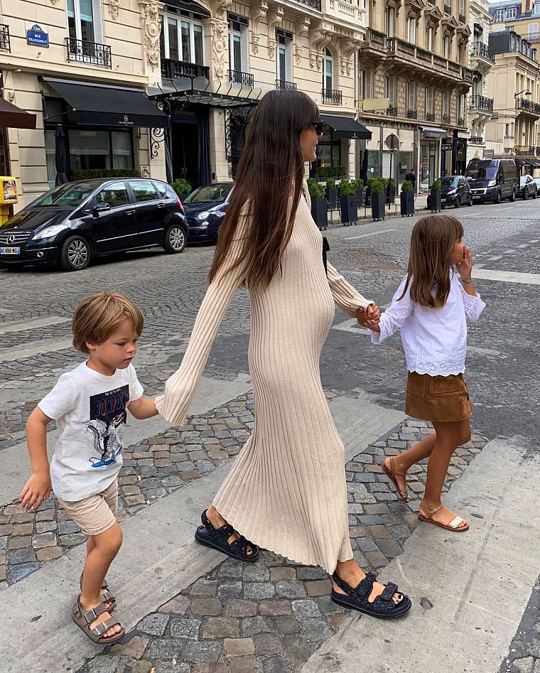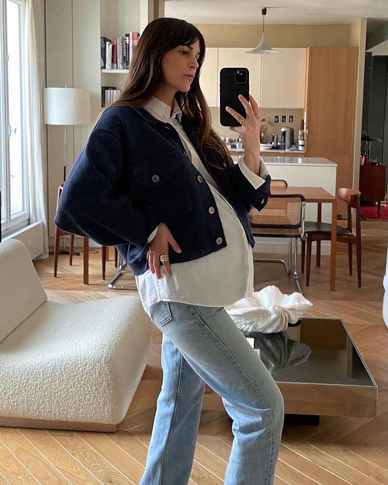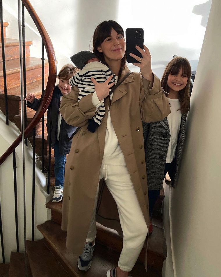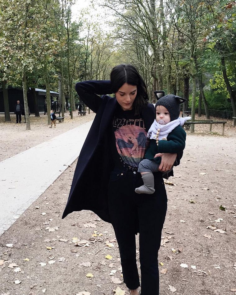 Лея Сфез с мужем и тремя детьми живёт в самом сердце Франции – Париже. Лея начинала свою карьеру в качестве модели и быстро нашла свой стиль. Как истинная парижанка, девушка не любит тратить много времени (и денег) на одежду и предпочитает лаконичный стиль, который она разбавляет трендовыми аксессуарами. Несколько недель назад Лея родила третьего ребёнка. И все 9 месяцев она попадала в объективы фотографов и всевозможные модные подборки на тему «модной беременности». И она, действительно, потрясающе выглядела, не скупая тонны одежды в специальных магазинах для будущих мам.