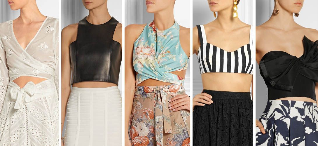 Привет из нулевых. Тогда топы носили с джинсами с низкой посадкой, сейчас же наоборот: высокая посадка брюк и яркий топ выдадут в вас модную штучку. Топы-бандо – полоска ткани на теле или ажурные бра, похожие на красивый бюстгальтер. Если вы хотите максимально сократить открытые участки тела, то носите кроп-топы с кардиганами или объёмными пиджаками нараспашку.