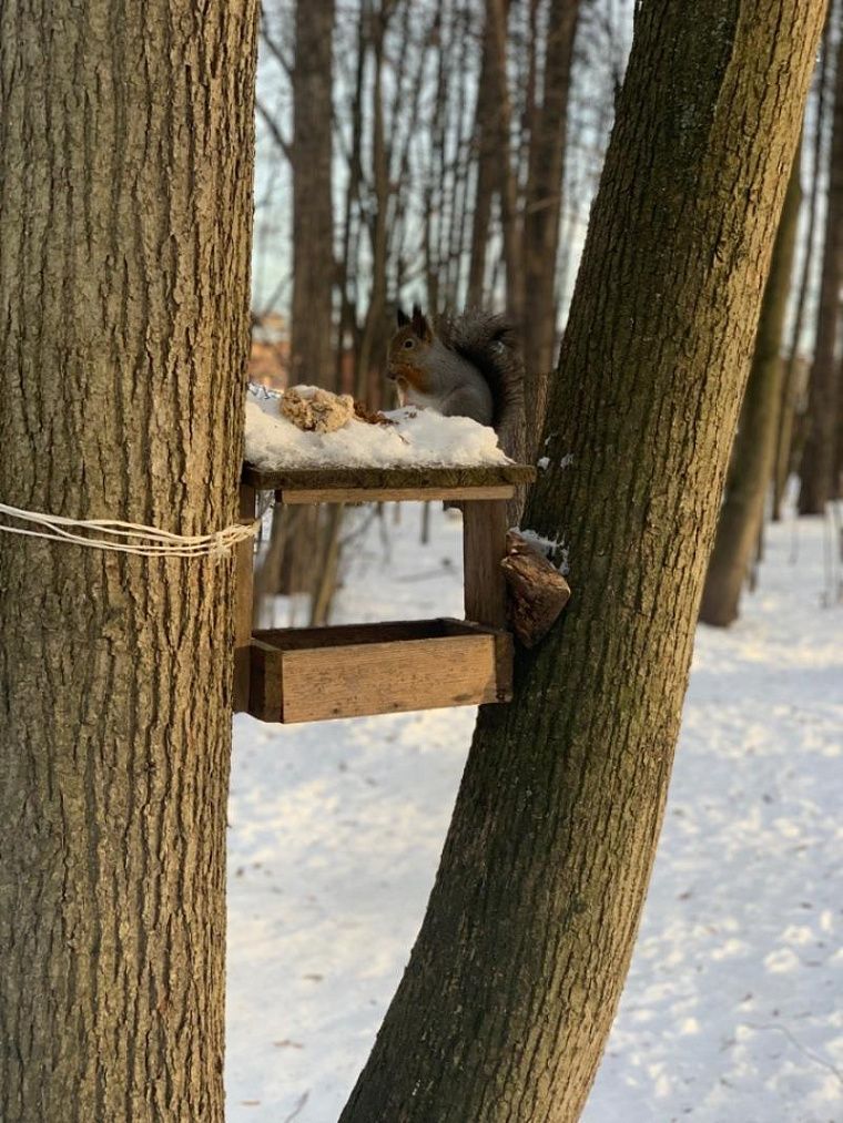 Если на улице холодный ветер, то мы идём в небольшой лес, который находится рядом с нашим домом. В лесу ветер не ощущается, а вокруг столько всего интересного и красивого. Все деревья стоят в снегу, на ветках кустов сидят красногрудые снегири, а на елке прыгают белочки. В лесу совсем другая атмосфера – сказочная, волшебная. Всё вокруг белое, снег чистый. Гулять по такому лесу – одно удовольствие. Я обычно катаю детей на санках по лесу, или они сами катают санки. Если им надоело кататься, то можем полепить там формочки из снега или понаблюдать за птицами или белочками.