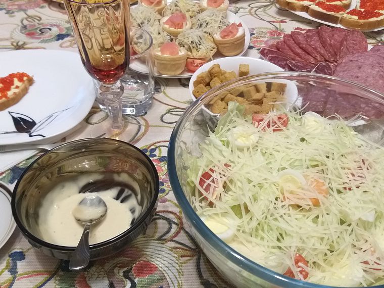 Пробовали другие салаты, но, всё-таки вернулись к оливье и остановились на нём. Традициям не изменяем.