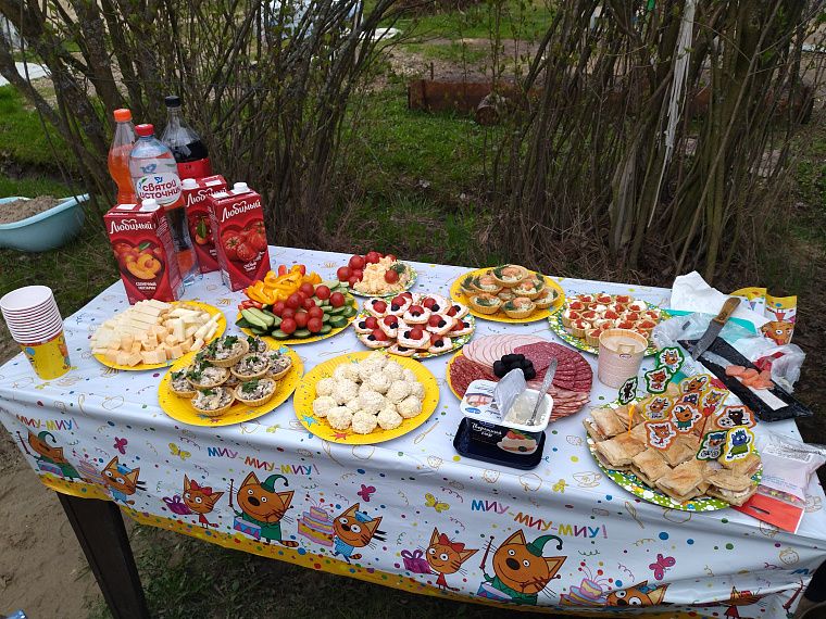Ну вот, вроде бы всё готово. Настал тот самый день. Миша в садике, моя семья на работе. Я езжу туда-сюда, на дачу и обратно, чтобы привезти продукты и украшения. В середине дня подключается муж и помогает в оформлении. Не все гости были на машине, ещё часть пришлось забирать самим. Я вся в «мыле», мы ничего не успеваем.