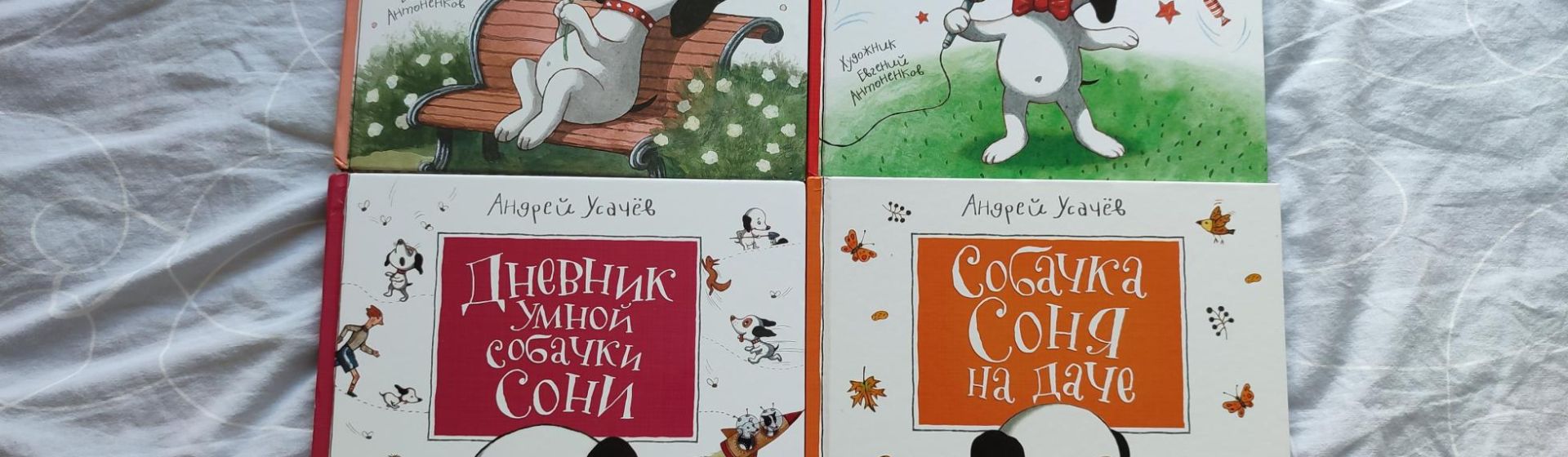Сначала мы купили книжку «Знаменитая собачка Соня» и «Умная собачка Соня». Это книжки про маленькую собачку по имени Соня, которая обладает необычайным умом и сообразительностью. С ней часто случаются забавные истории, но благодаря находчивости и остроумию она находит выход из любой ситуации. В книге будут рассказываться короткие истории о проделках, приключениях и размышлениях собачки Сони. Иллюстрации будут весёлыми и красочными, а текст – лёгким для детского восприятия.