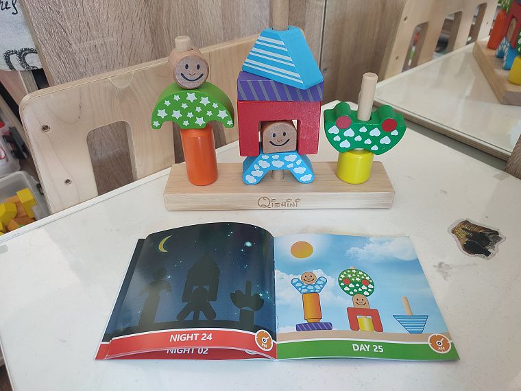 Когда открыла коробку, детали ничем неприятным не пахли. На мой взгляд, огромный плюс книжка вместо карточек, которые легко потерять. Небольшая книжка с заданиями – 48 комбинаций (половина день, половина ночь). Конечно, если бы страницы книги были бы более плотные, то было бы идеально, но сейчас дочка уже достаточно аккуратна с книжками.