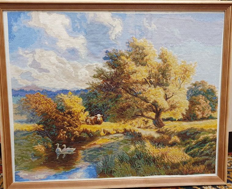 Спустя несколько недель я получила схему и с огромным желанием начала вышивать. Всё свободное время я тратила только на вышивку. Когда картина была готова, я смотрела на неё и думала, сколько раз я хотела всё бросить, но результат меня очень радовал. Я купила для картины рамку и подарила её родителям!
