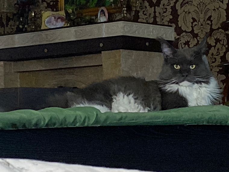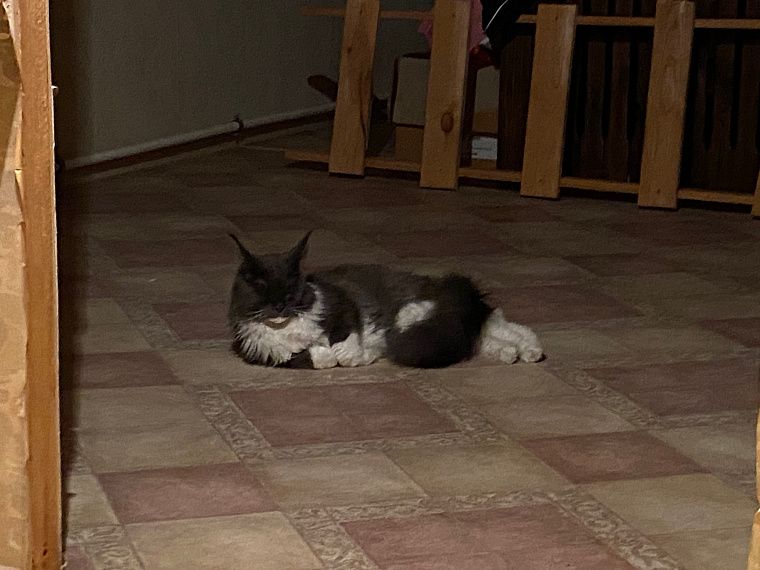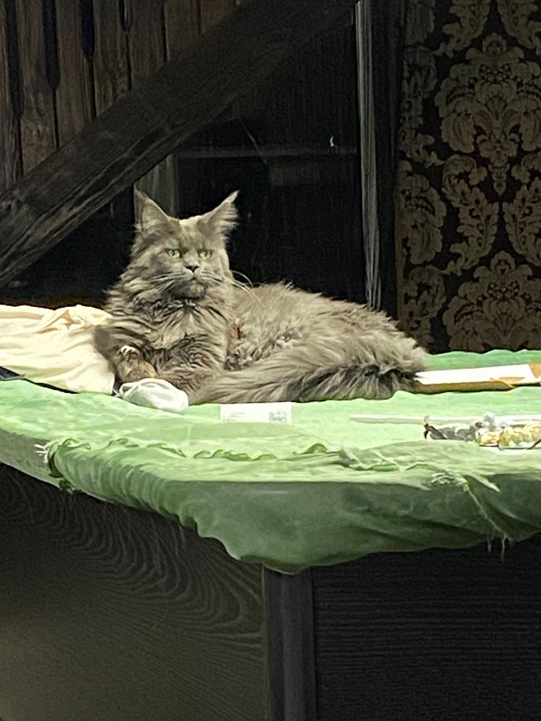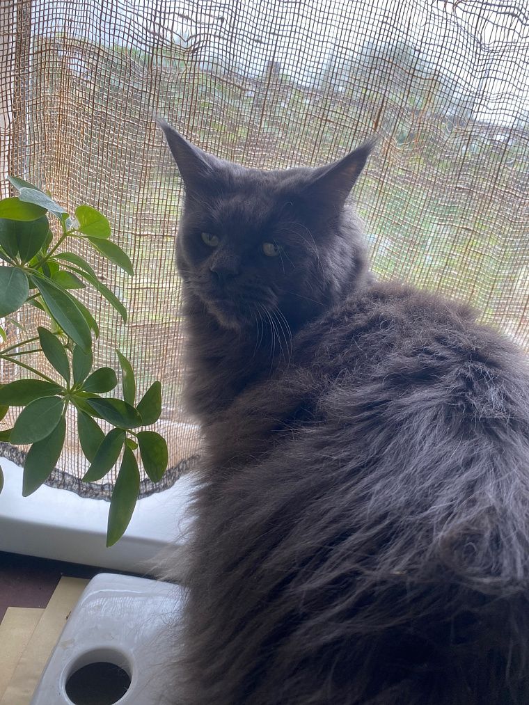 Оказывается тот самый долгожданный и любимый питомец все время был с ней рядом. Однажды к ней на участок пришла больная и изможденная кошка породы «мейн-кун». У кошки были больные глаза, наполненные гноем веки, закрывали их полностью. Шерсть висела клочками, а от хвоста осталась одна кисточка на кончике.