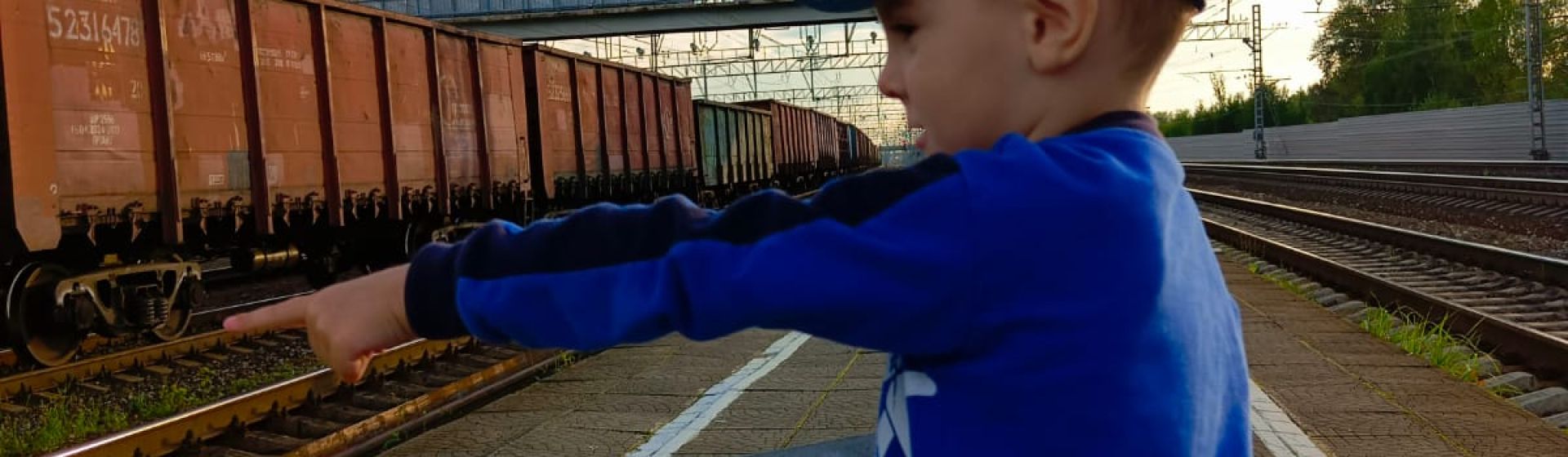Миша после садика с радостью опять побежал смотреть на поезда, да и Миле уже понравилось. Сегодня он впервые увидел старый тепловоз, из него так и валил чёрный дым. Прошлым летом мы ездили на детскую железную дорогу, там тоже был тепловоз, но кочегарил совсем не так.