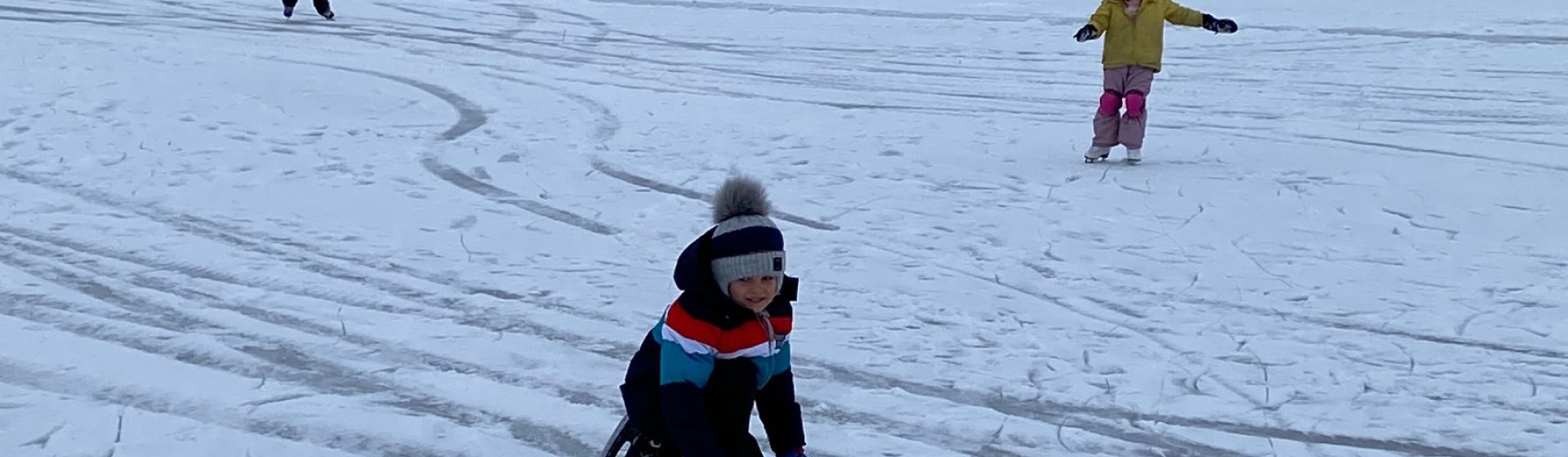 Мы взяли коньки и отправились на лёд. Прелесть в том, что в декабре в нашей местности выпадает довольно мало снега, а температура такая, что мелкие водоёмы крепко промерзают. К первому выходу на лёд не приходится очищать природный каток от снега. Даже если есть небольшое снежное покрытие, оно не мешает скользить по поверхности.