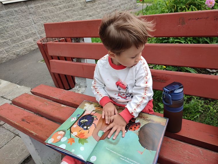 Не понимаю, почему другие родители так удивляются, что дочь сначала бегает, а потом садится и с удовольствием слушает книгу. При этом они даже умудряются выражать своё недовольство, что тут устроили читальню. Хотя я считаю, если ребёнок хочет слушать, надо читать, иначе всё стремление умрёт на корню. Ну не в телефоне же ей сидеть.