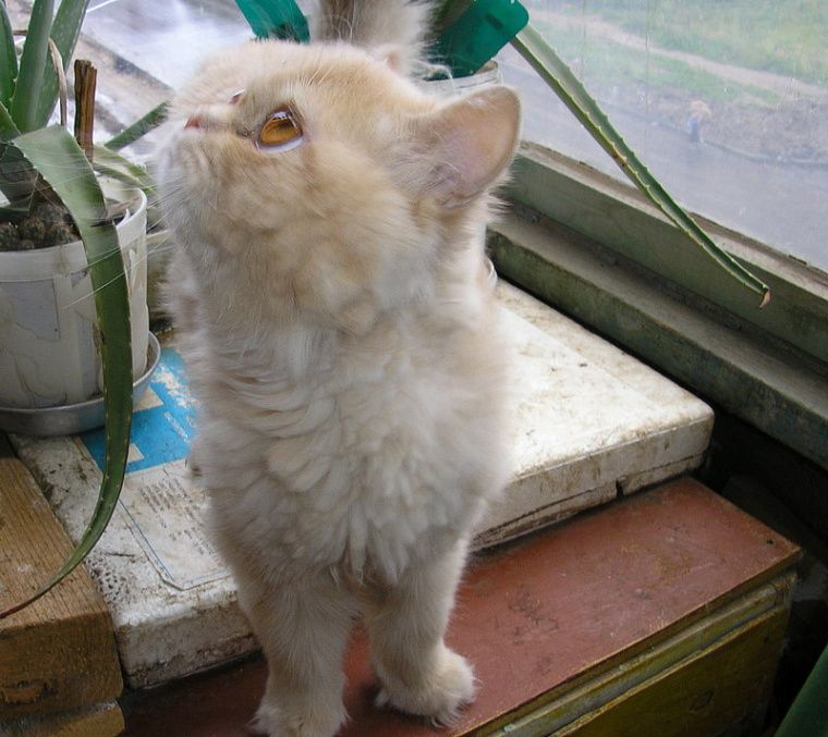 Это был настоящий взрослый персидский кот. Он был весь в колтунах. Забрали сначала на дачу. Помыли и, подумав о том, что не можем его так бросить, забрали его в город. Привезли в квартиру, где жил мой молодой человек, иначе Тимошка нас бы съел.