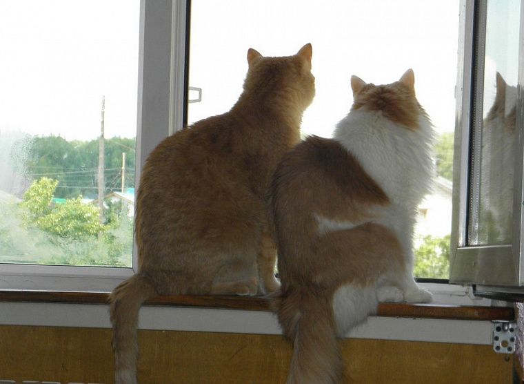 Первое время после свадьбы мы жили за городом. Мы забрали с собой Рыжика и Пусю, они отлично прижились на втором этаже. Да и местные птички куда интереснее, чем наблюдать за голубями с высоты пятого этажа.