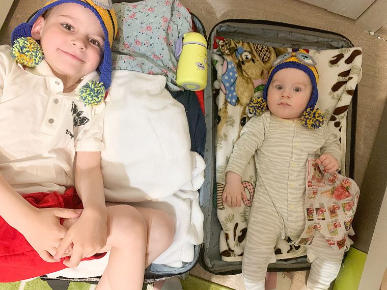 2. Выбрать место и фон. Я фотографировала сыновей на кровати с разными по дизайну и текстуре пледами;