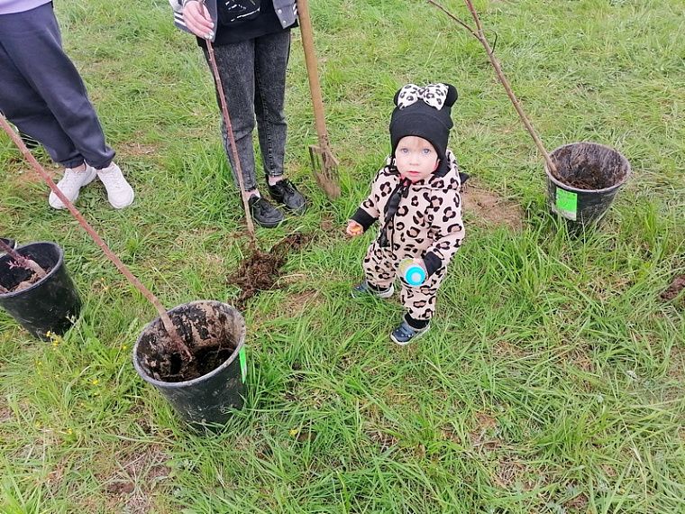 У кого возникла эта идея, я не знаю, но «две силы» объединились вместе на благое дело. Строительная организация предоставила территорию и технику для посадки яблонь, а предприниматель организовал продажу саженцев. Мы узнали о мероприятии совершенно случайно. Конечно же, со старшей дочерью решили поучаствовать. Она же и предложила идею посадить яблоню для неё с сестрой.