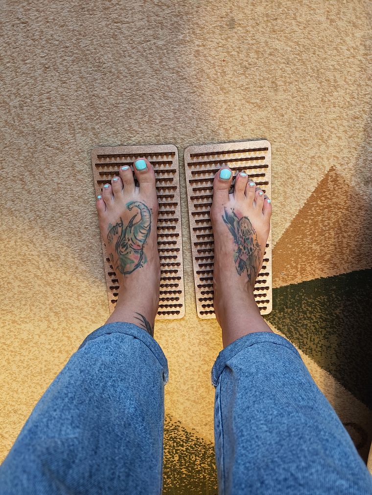 Досточки достаточно большие – 30*13, любая нога должна поместиться. Иглы все ровные, не должны оставить заноз, конечно, если смогут выдержать вес. Написано, что до 100 кг. Я постояла, конечно же, и мне понравилось.