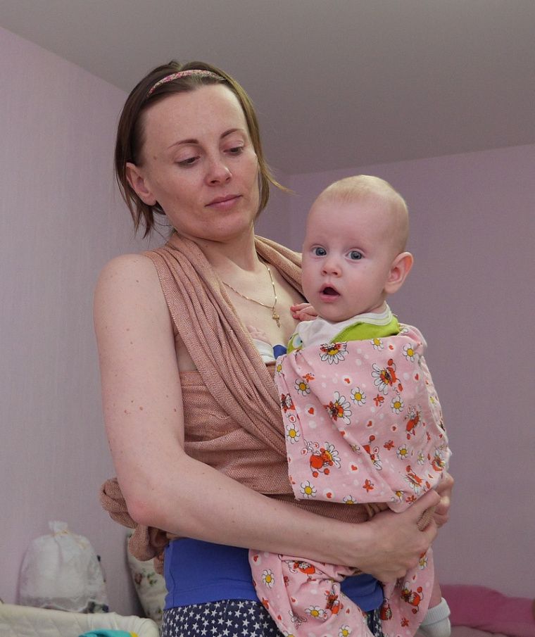 Первый раз оказался не очень удачным. Сын почему-то упорно не хотел лежать в слинге и возмущенно кричал. Я заподозрила, что дело в ткани: в её состав входил лён, и фактура полотна было немного жестковатой для нежной кожи младенца. Как только я положила тонкую пелёнку между ребёнком и слингом, малыш согласился разместиться в переноске. И с тех пор проводил в слинге много времени. Мы не только выходили в нём на прогулку, когда под рукой не было коляски, но и «гуляли» дома, когда сын не хотел оставаться в одиночестве. Вместе мы готовили и убирались.