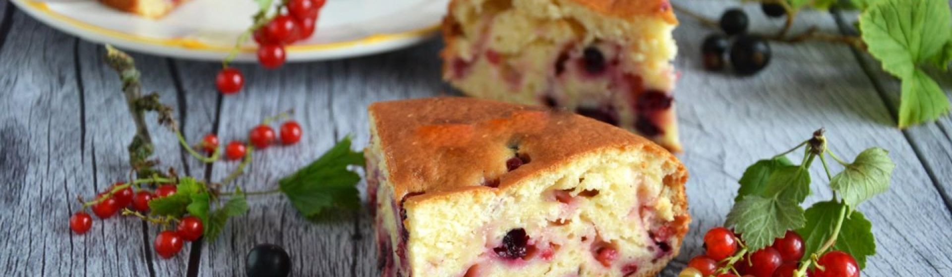 - ягоды – вишня, смородина, можно изюм. 200-400 г. Вишни потребуется меньше, чем смородины, так как она даёт обильный сок. При большом количестве ягоды пирог может получится влажным. Можно положить и другие ягоды, но с кисло-сладкими особенно вкусно.