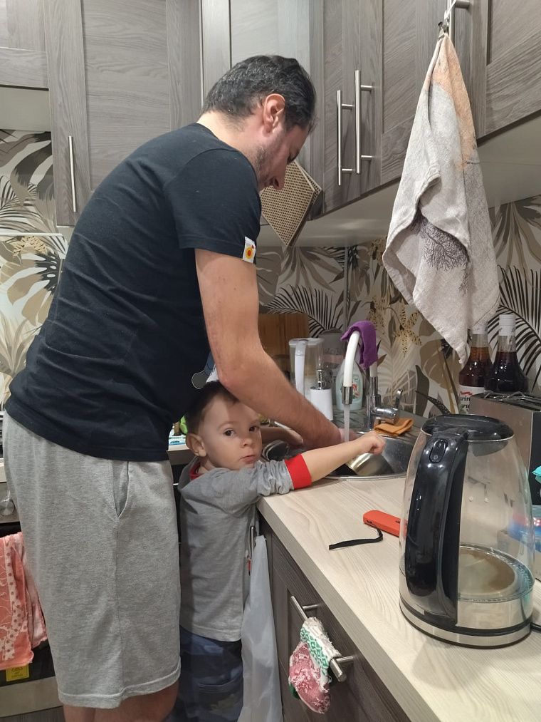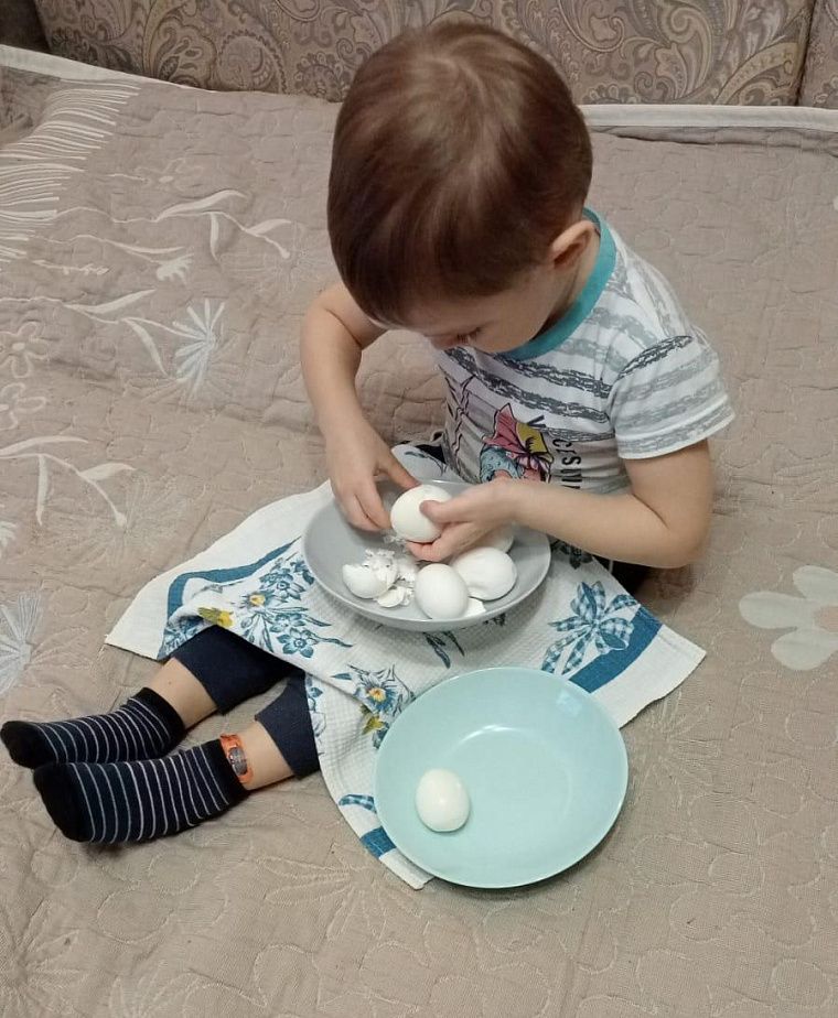 Будучи совсем малышом, Миша постоянно просился мыть посуду, и мы не могли ему отказать. Благо, это длилось около полугода и сейчас у него нет дикого желания в этом принимать участие. Но сейчас у ребёнка стала проявляться любовь к приготовлению пищи.