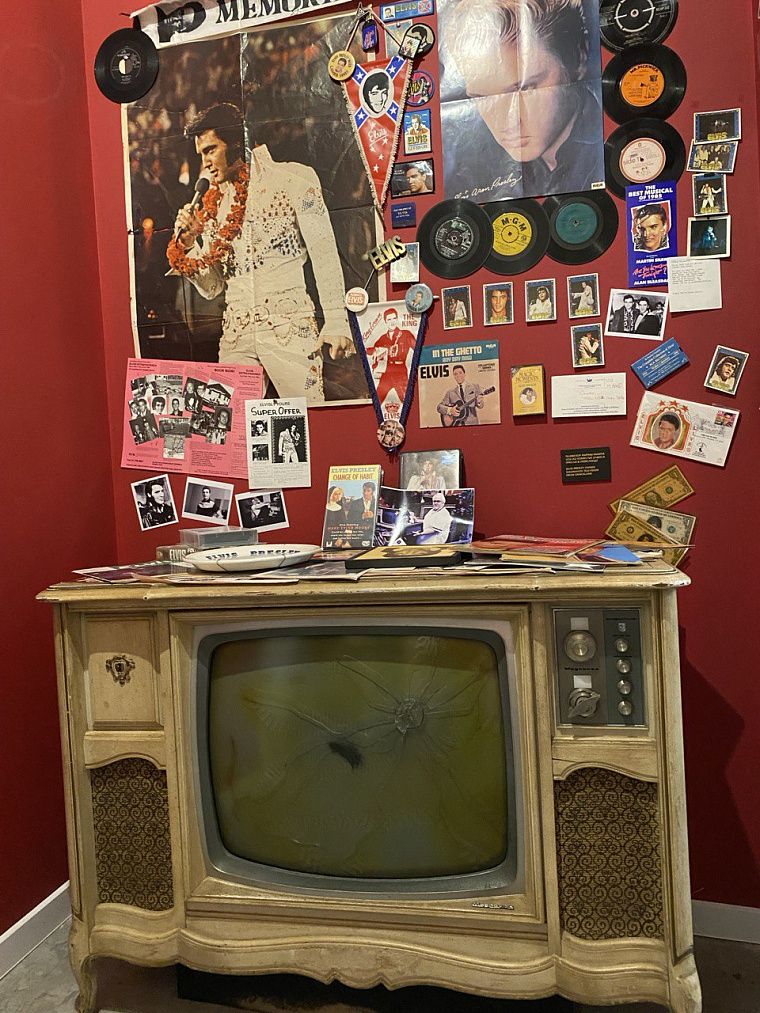 Есть в новом музее настоящие экспонаты легендарных музыкантов. Например, телевизор Элвиса Пресли. Когда-то ему не понравилась одна из передач в эфире, певец выстрелил из оружия. Теперь тот самый телевизор с дыркой в экране – экспонат самарского музея. Есть картина Элвиса, которая когда-то висела на стене в его лондонском доме.