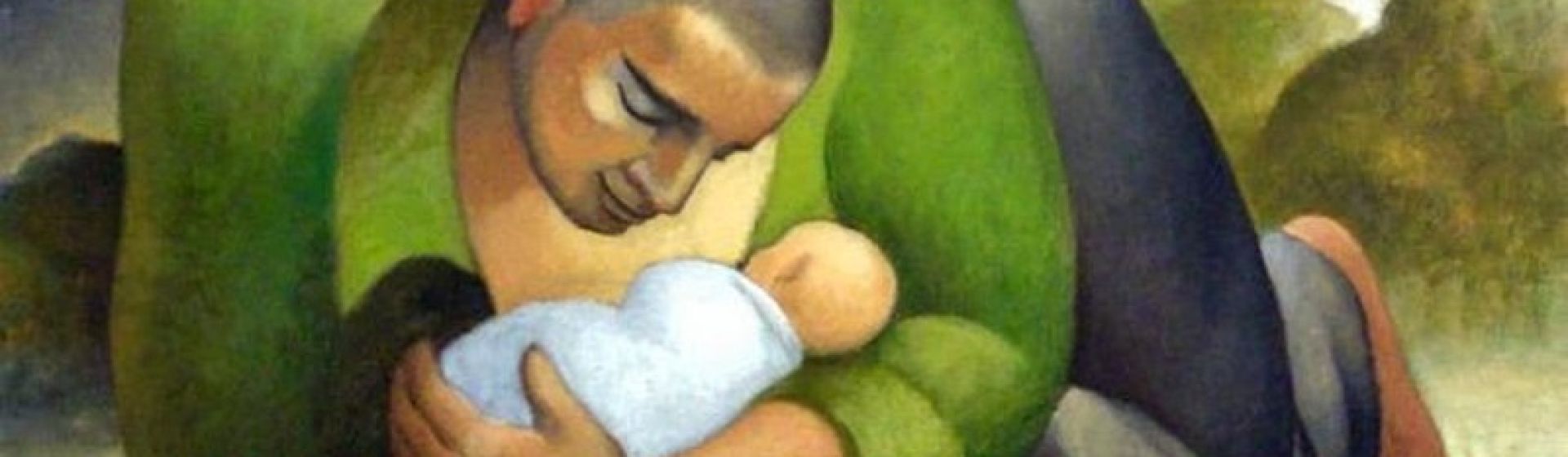 У российской художницы Маргариты Сикорской, нашей с вами современницы, есть цикл картин «Простые радости», который повествует о радостях бытия. На одной из них изображён мужчина с младенцем на руках. В свойственной автору манере мужчина нарисован большим и крупным настолько, что кажется, будто он занимает больше половины полотна. Деревья за таким исполином кажутся совсем маленькими, а звёзды и луна на небе - крошечными. Мужчина держит в руках младенца в белой пелёнке, как бы образуя для него одновременно и кровать, и стены, и крышу над головой. Образ мужчины-великана и беззащитного младенца отождествляется с ответственностью, самопожертвованием и крепкой отцовской любовью к своему ребёнку.