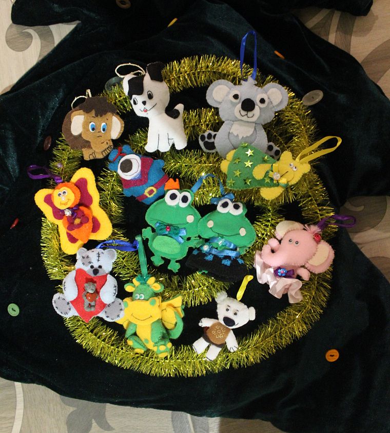 Конечно же, мы украшаем ёлочку и квартиру. В доме у нас много ёлок. Для детей я сделала ёлочку из фетра с такими же игрушками. У нас во дворе растёт живая ёлка, и из маленькой она уже превратилась в большую красавицу. Ёлочка на улице остаётся украшенной до самого мая, мы её разбираем, когда начинается посевная. А самую главную ёлку мы украшаем всей семьей. На макушку, куда могу достать только я, мы вешаем старинные игрушки наших бабушек, которые достались мне на память. А ниже вешаем игрушки, которые не бьются. Конечно, мы делаем символ года, изготавливая его из перегоревших ламп, и вешаем его на ёлочку.