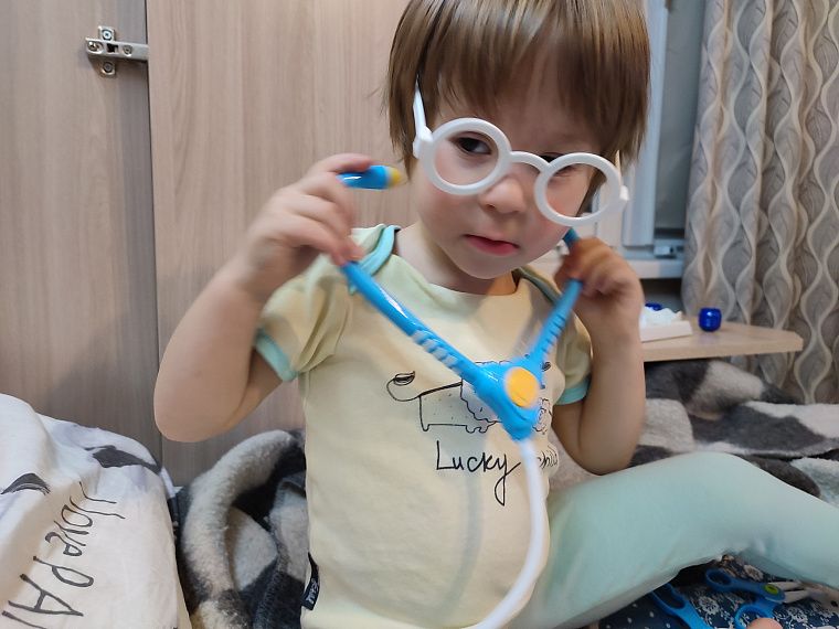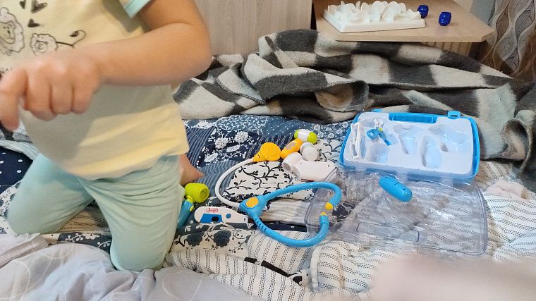 Лазарет открыт в полном объёме, мне места остаётся совсем чуть-чуть, остальное занято. Сначала дочь всех слушает внимательно. Да, стетоскоп жестковат, но для трёхлетки нормально. У ребёнка голова поменьше, не так ощущается, как на нас, взрослых, не давит на ушки. А уж стук сердцебиения на нём, когда прислоняешь его к телу, у дочки вызывает особый восторг.