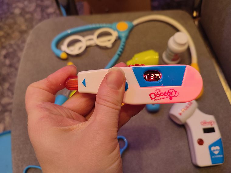 Интересно наблюдать, как по-деловому дочка всех осматривает и решает, у кого болят ушки, у кого горлышко, у кого температура. А главное, эти движения для дочки становятся более знакомыми. Теперь нет страха и недовольства, когда ей самой измеряют температуру, смотрят горло или капают в глазки.