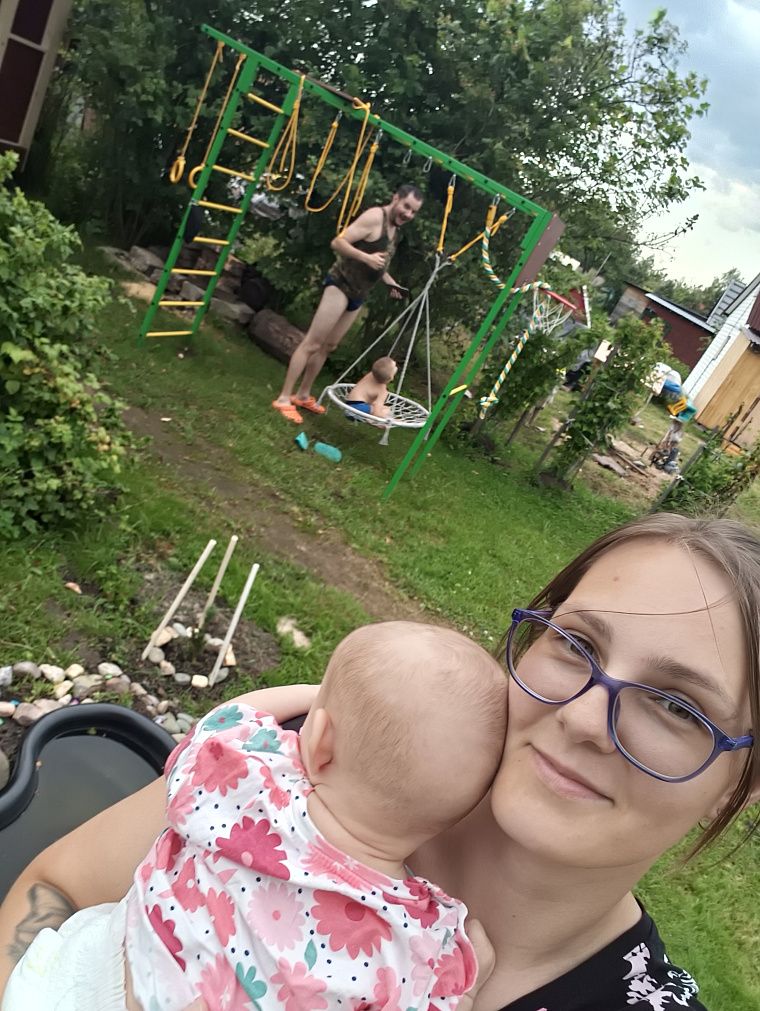 Муж с сыном качались на качелях, а мы с дочерью наблюдали в сторонке. Шашлык мы всё же поели, наслаждаясь запахом после дождя. К вечеру и свет включили, и мы даже успели посмотреть перед сном мультики.