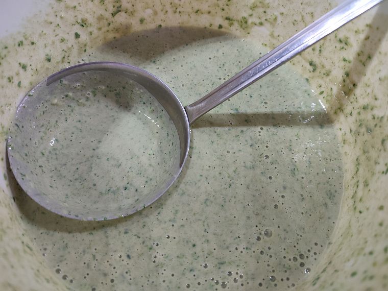 Я использую замороженный резаный шпинат, мне нравится, что это удобно. Он всегда есть под рукой. Достаточно положить в микроволновку на пару минут – и он разморозился. Но если вам по душе свежий, главное – хорошо и мелко порезать, а можно соединить с молоком и измельчить блендером.