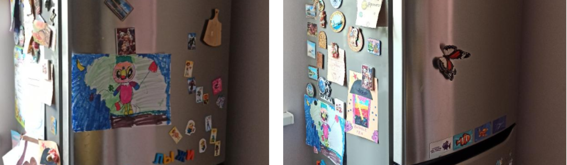 Как только столик журнальный был приведён в порядок, я взялась за холодильник. Быстро его протёрла, некоторые рисунки убрала. Остались только те, которые пожелала дочка оставить.