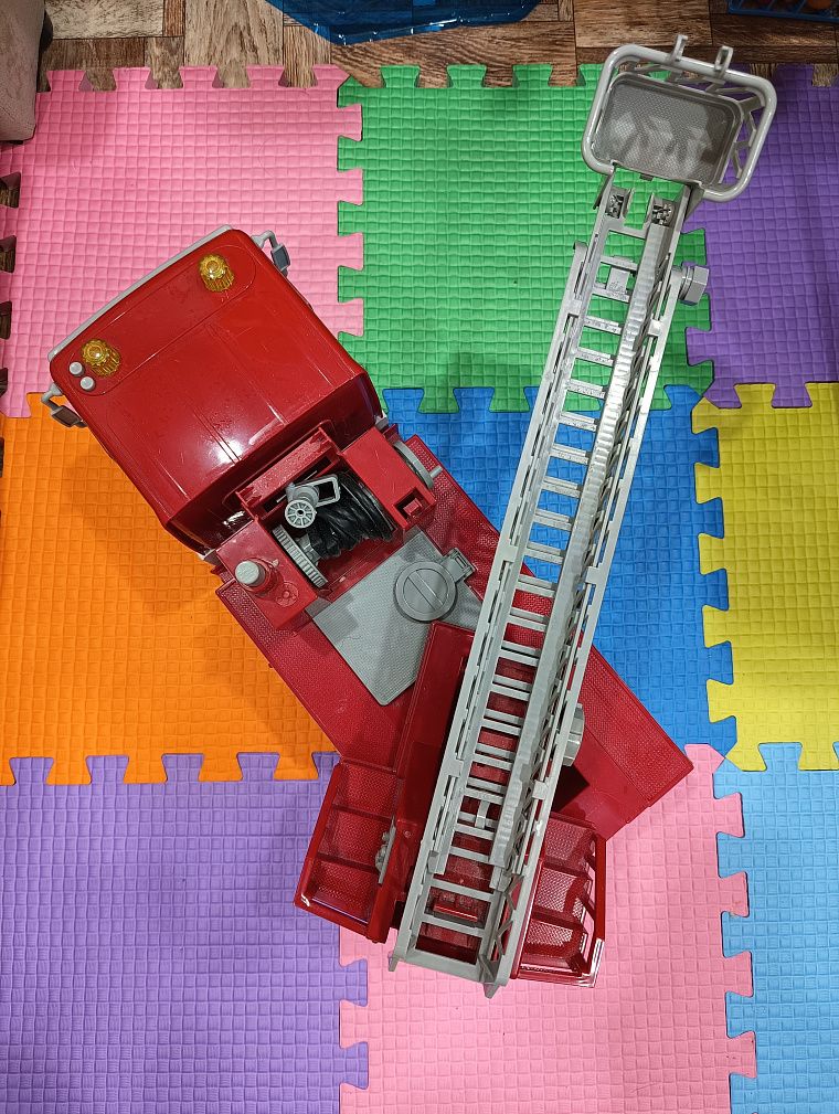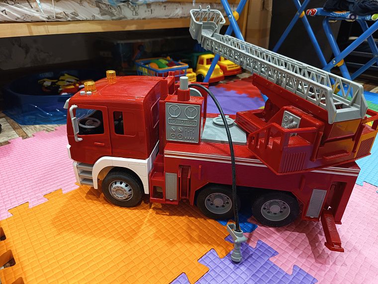 Конечно же, за год интерес к машине стал меньше, пожарную бригаду всё реже «вызывают» на тушение пожаров, всё чаще она простаивает. Но ведь так происходит со всеми игрушками. Первое время всё новое и желанное дети не выпускают из рук, а со временем появляются другие интересные и предпочтения. И это правильно, ведь сын взрослеет.