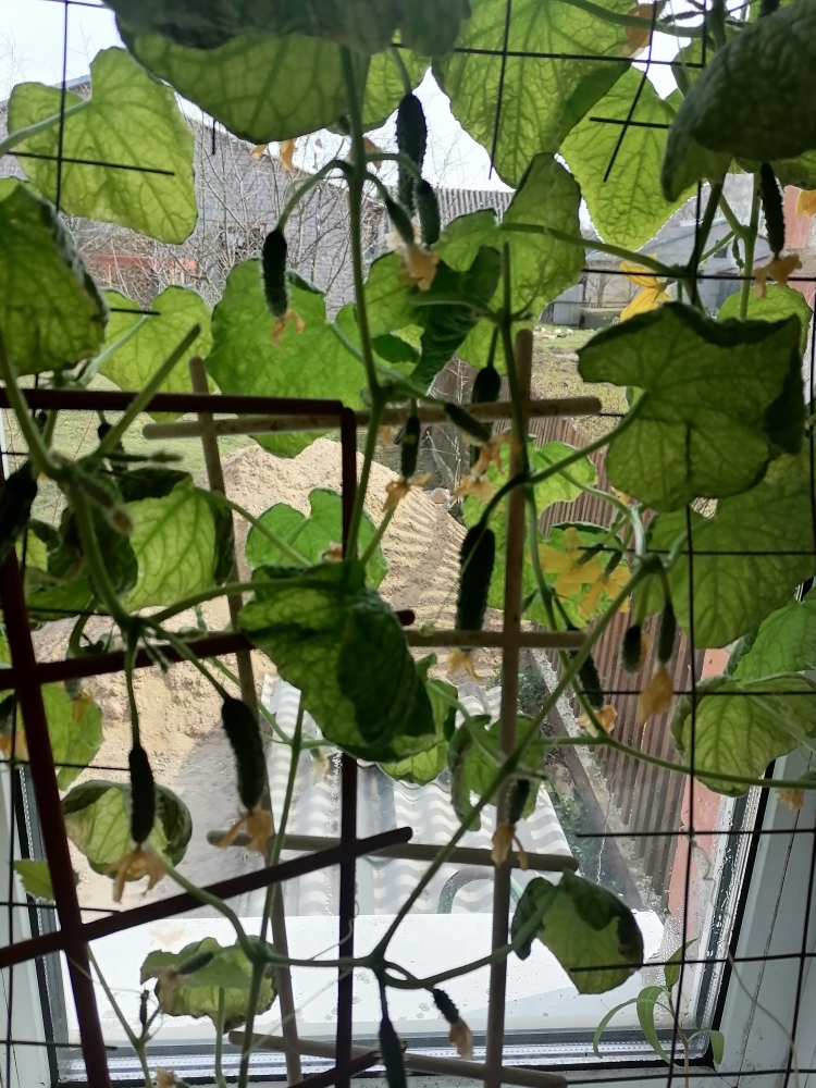 Из овощей первыми порадовали огурцы. К середине апреля мы сняли первые огурчики, а немного позже и первые созревшие томаты.