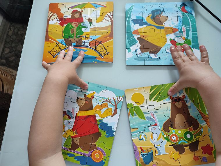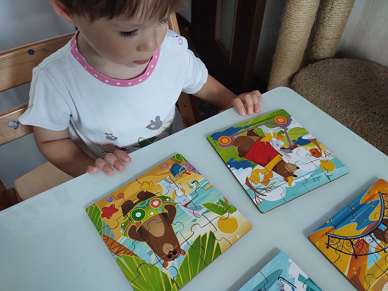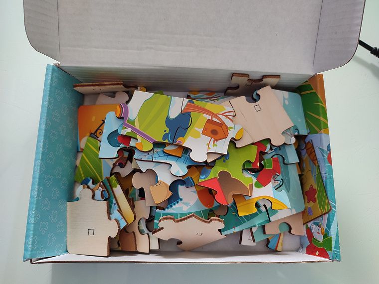 А как можно было сделать коробку размером меньше, чем сложенный пазл, и все 4 картинки при хранении, конечно, перемешиваются между собой. Сиди, выбирай. И вроде качественные детали, хорошая милая картинка, но вот две вещи, которые омрачают игру. Так красиво написано. Смешайте пазлы одной картинки, уважаемый производитель, сначала мама должна её собрать и разложить по пакетикам, чтобы ребёнок мог насладиться игрой. Да, всё это решаемо, но это второй минус за игрушку.