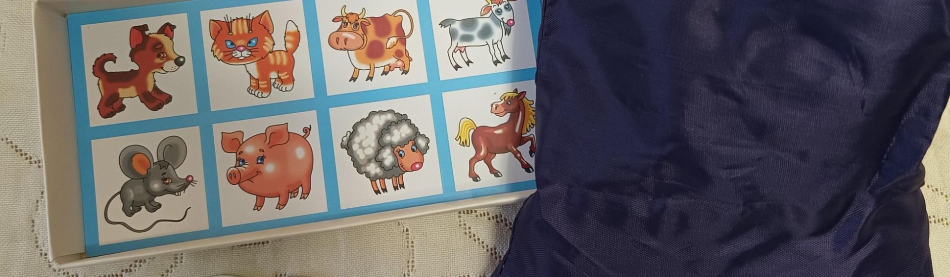 Есть у нас домино с изображением домашних зверушек. Это была первая игра, которой обучали Мишу. Её взяли мои родители в первую совместную с внуком поездку к морю. Очень пригодилась в поезде. Ребёнку объяснили простые правила: по сколько штук берёт каждый игрок, порядок игры, кто начинает ходить, кто выигрывает. Приходилось поддаваться, чтобы не расстроить ребёнка проигрышем и порадовать победой. Проигрывать Михаил не умеет и не хочет, сразу обижается и потом сидит насупленный.
