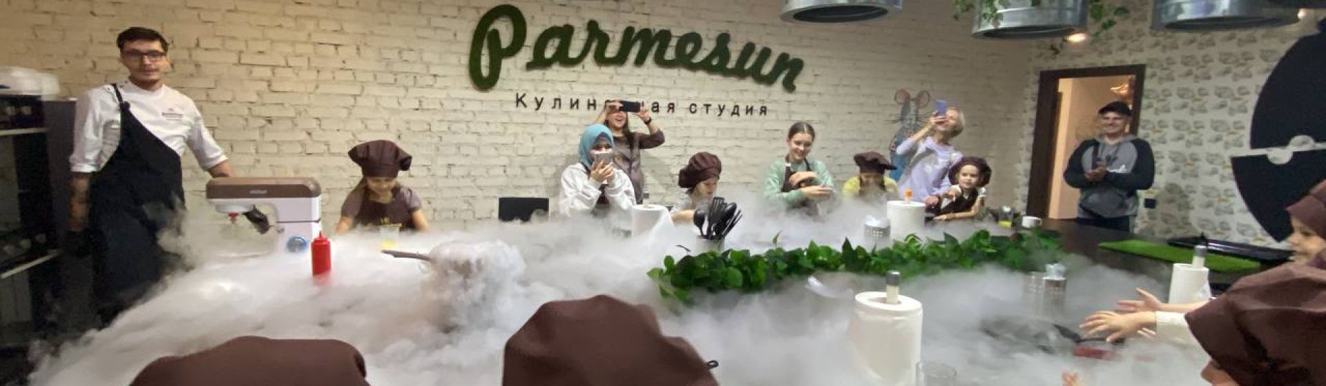 Далее наступила очередь готовить десерт. Вот это был настоящий шедевр. Шеф-повар мороженое приготовил сам на большом миксере, а вот всё остальное делали дети. Бананы необходимо было обжарить на сковороде, затем шеф подошёл абсолютно к каждому ребёнку и устроил огонь до самого потолка. Признаюсь, у меня сердце ёкнуло, но дочка была в восторге. И завершилось всё жидким озотом, который использовался исключительно под контролем. Из этого действия шеф-повар сделал настоящее музыкальное шоу. По вкусу десерт получился приятным, но жареные бананы оказались, если честно, на любителя.