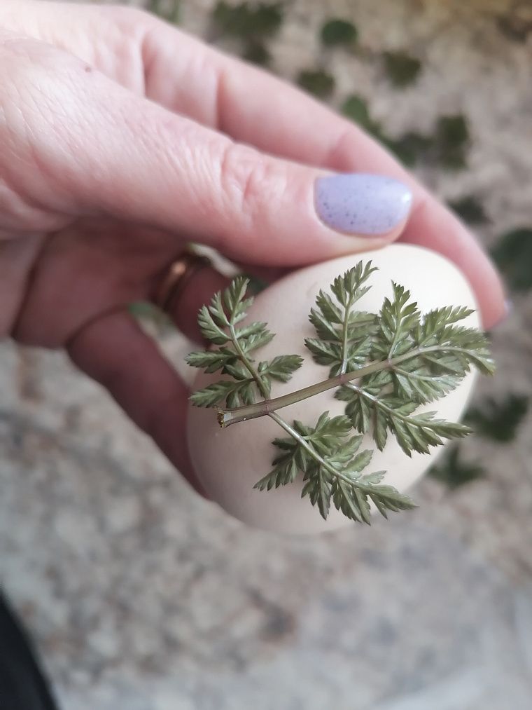 Собирали на улице различные травинки, промывали их и аккуратно накладывали на смоченное холодной водой яйцо, которое затем оборачивали капроном или трёхслойной марлей, формировали мешочек и завязывали края ниткой.