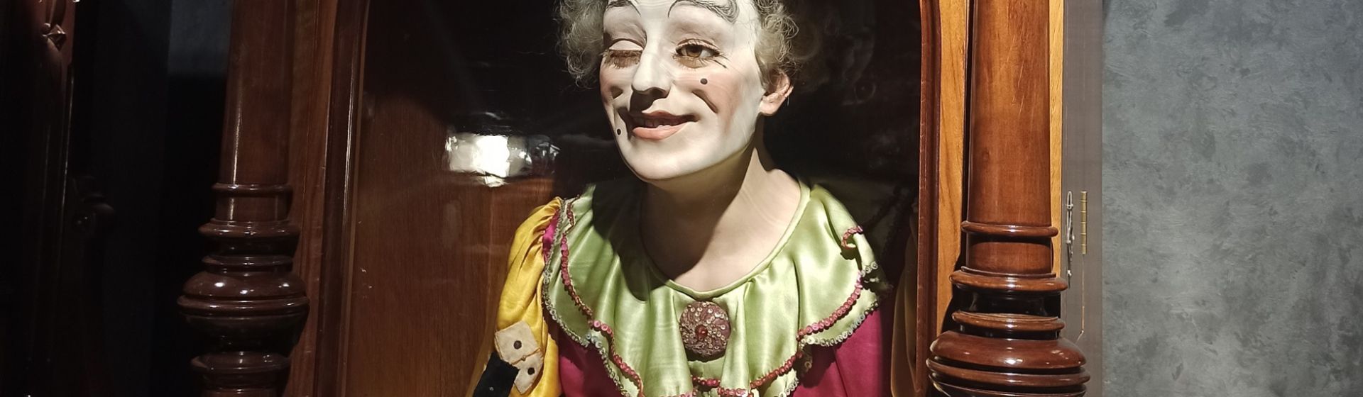 Выставка была посвящена цирковому искусству и на ней представлена коллекция кукол-автоматонов из Франции конца XIX - начала XX века. Так что же такое "автоматон"? В переводе с греческого "автоматон" - "действующий по своей воле". Это механическая кукла с приводом, которая совершает запрограммированные действия, имитирующие движения живого человека или животного. Это было сложное изобретение для того времени, предназначенное для развлечения людей. Таких кукол показывали в цирках, ими развлекали знать, их часто размещали в витринах магазинов для привлечения покупателей. Человекоподобные механизмы могли совершать не только простые движения руками, ногами, головой, но могли моргать, открывать рот, двигать глазами, совершать дыхательные движения, танцевать, воспроизводить мелодии на музыкальных инструментах, писать текст.