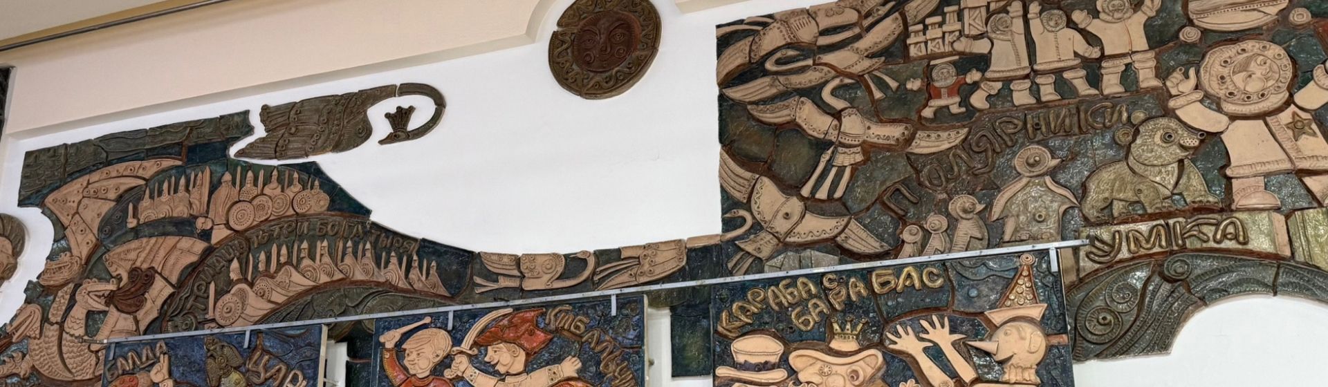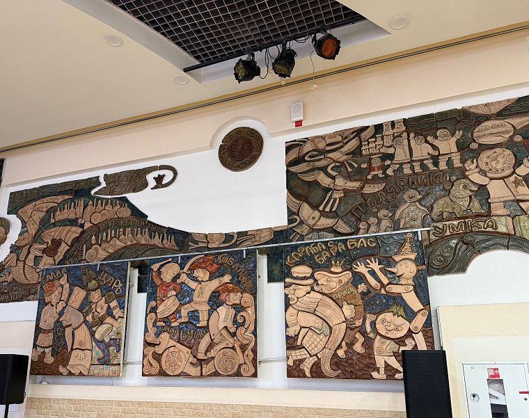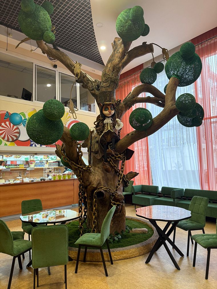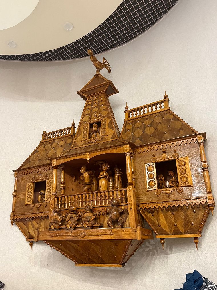 В холле после гардероба располагается уникальная деревянная движущаяся композиция, на которой можно узнать героев известных сказок.