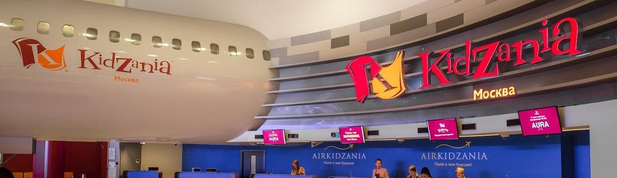 Билет в «Кидзанию» выглядит как настоящий билет на самолёт, даже есть такие же категории: комфорт, комфорт плюс, бизнес и премиум. Вход начинается с аэропорта. Дети видят настоящий самолёт, а миновав вход, попадают в город, в котором ездят автобусы с пассажирами, спецтранспорт, есть светофоры, маленькие почтальоны разносят почту, дежурит патруль полиции.