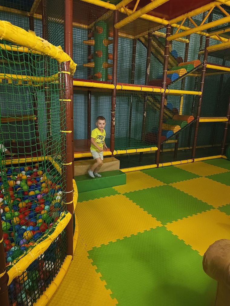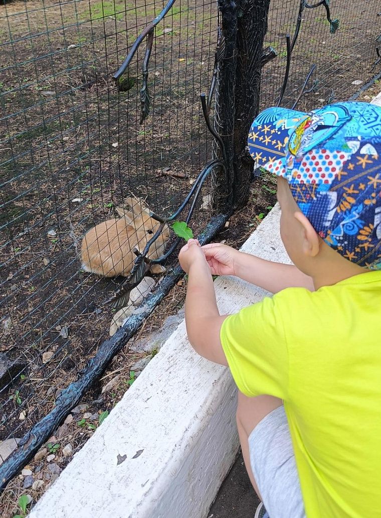 Каждое утро начиналось с проката самокатов и машинок. В перерывах между едой и развлечениями мы паслись с листьями одуванчиков рядом с кроликами и кормили их. Ещё Миша лазал в различных детских комнатах и городках, они с папой даже сделали поделку на мастер-классе.