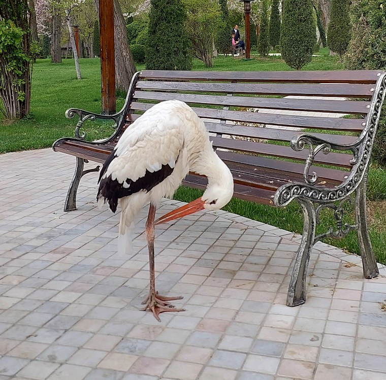 Во время нашей прогулки мы видели спокойно гуляющих павлинов, пару аистов, уток и красивых рыбок, плавающих в пруду. На территории парка есть маленькие беседки, в которых можно посидеть и перекусить, так же можно устроить пикник. Есть беседки, которые установлены рядом с водоёмом, там можно отдохнуть, наслаждаясь видом вокруг, и наблюдать за людьми, плавающими по озеру на катамаране или лодке.