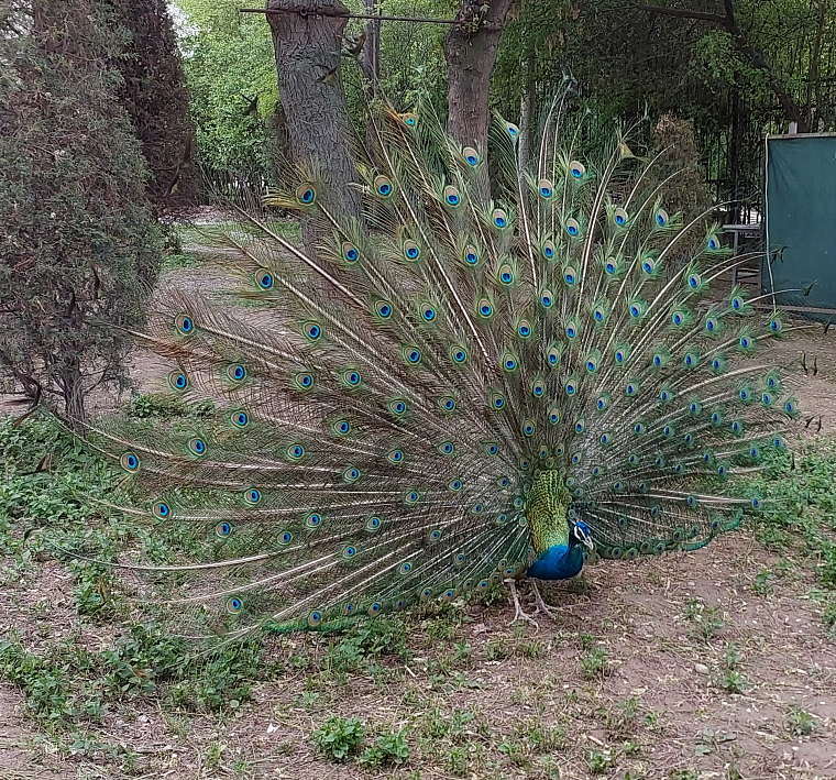 Приплыв к берегу, мы продолжили дальше нашу пешую прогулку. Увидели трёх павлинов, которые не боялись людей, и к ним можно было подойти очень близко. Павлины показали раскрытый хвост, а ещё, оказывается, они очень громко кричат. Немного напугали нас, так как крик был неожиданный.