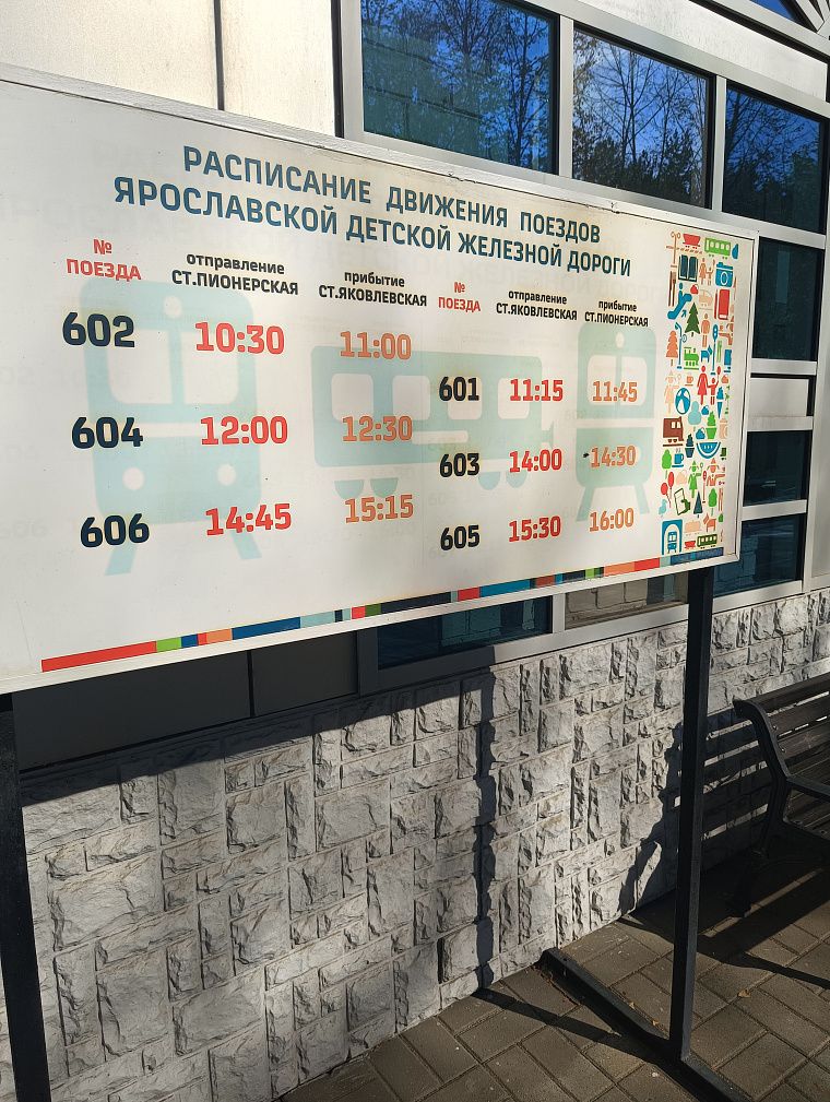 Придя на вокзал, мы приобрели билеты и оправились ждать на платформе. Как оказалось, нас отправит в путешествие настоящий тепловоз. Как мы узнали годом позже, его списали много лет назад в Украине, затем он отправился в музей Ярославля и украшал вход долгое время. Но работники дороги решили его поставить на ноги, и теперь он выполняет несколько рейсов в день, а рельсы на входе так и пустуют, дожидаясь тепловоза.