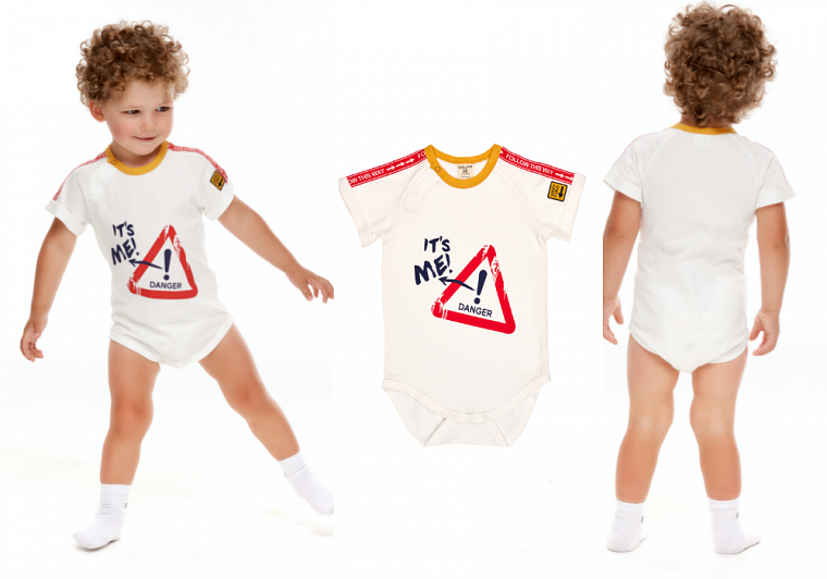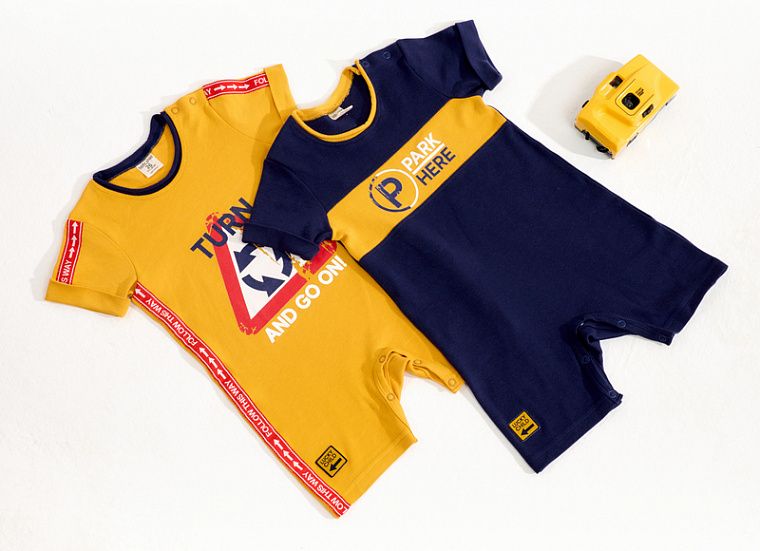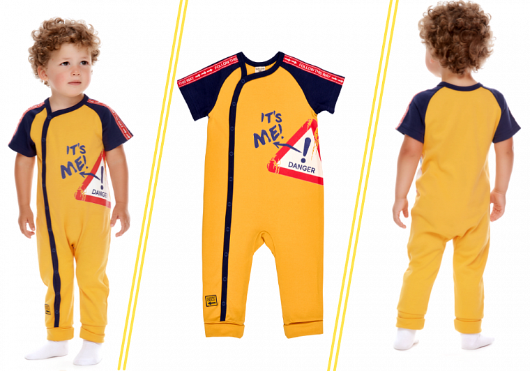 Боди с короткими рукавами для новорождённых – отличный выбор. Тонкое трикотажное полотно из 100%-го хлопка будет приятно к телу малыша, а модель с увеличенным пространством для подгузника и кнопками внизу поможет родителям быстро переодеть малыша при необходимости. На горловине есть дополнительная кнопка для лёгкости переодевания. Дизайнерское решение для этого боди – яркий принт и жаккардовая лента по линии плеч. Всё это делает модель эффектной и запоминающейся.Полукомбинезон или песочник с рукавами – идеальная одежда для новорождённых и малышей до 1 года. А этот полукомбинезон модного горчичного цвета может стать хитом среди домашней одежды. Рукава прикрывают плечи малыша, увеличенное пространство для подгузника делает эту модель комфортной для ребёнка, а кнопки внизу и на плече помогут родителям легко и быстро его переодеть при необходимости. Мягкая горловина сделана так, что не натирает шею малыша. По бокам полукомбинезон усилен жаккардовой лентой, которая к тому же является интересным дизайнерским решением. Детский демисезонный комбинезон с рукавами– незаменимая одежда. В таком комбинезоне ребёнку будет комфортно дома в любое время года, а летом это идеальная одежда для прогулки в коляске. Эта модель хороша открытыми ножками – малышу будет нежарко. Второе её преимущество – кнопки от горловины до стопы, благодаря которым ребёнка можно легко переодеть прямо в коляске. В этом комбинезоне сочетается тёмно-синий цвет рукавов и отделки с основным горчичным цветом. Рукава усилены вшитой жаккардовой лентой контактного красного цвета с фирменным принтом.