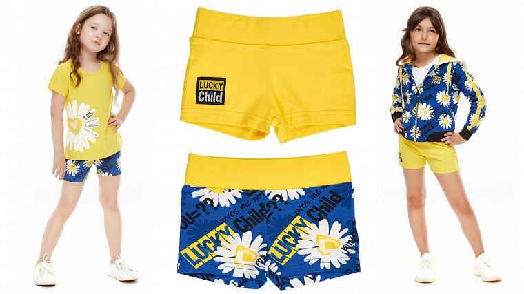 Трикотажные шорты – незаменимая одежда для любой девочки. Мягкий хлопковый трикотаж делает их максимально комфортными, широкая резинка на талии не давит на живот. Для маленьких размеров предусмотрено дополнительное пространство для подгузника. В комплекте две пары шорт жёлтого цвета и синего с принтом идеально дополнят образ девочки, одетой в одежду из коллекции «Любит – не любит».