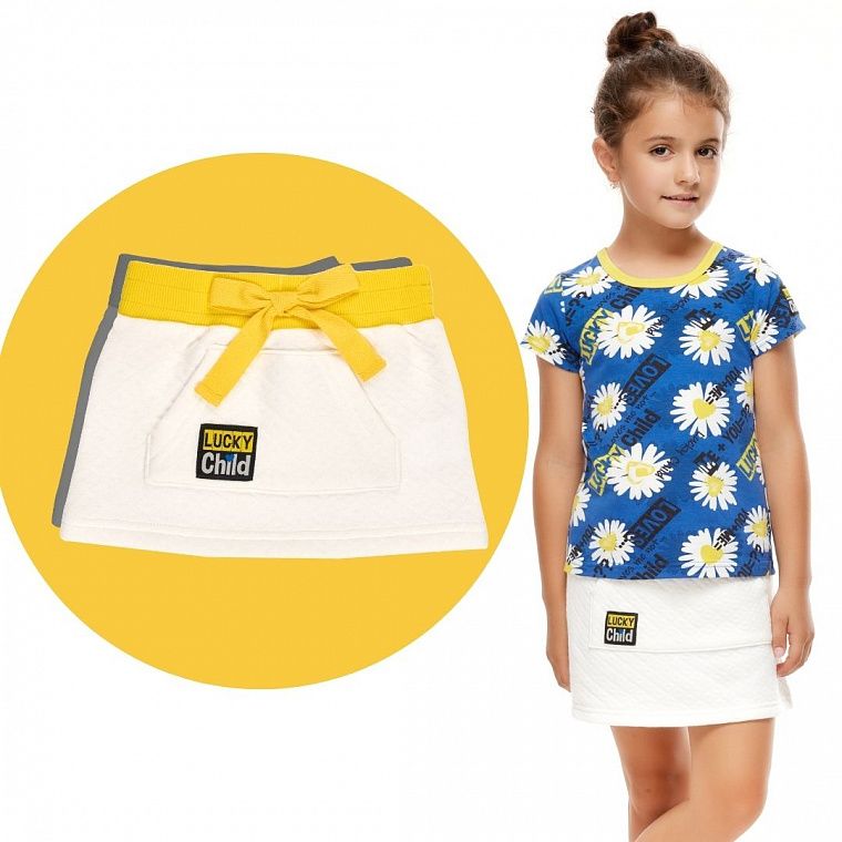 юбку для девочки – та ещё задача. В этой модели сочетается много преимуществ: стёганое трикотажное полотно «капитоний» (70% хлопка, 30% полиэстер), прямой крой, широкая резинка на талии, нарядный молочный цвет и, наконец, модный карман-кенгуру, как у толстовок. Эта юбка подойдёт как для малышки, которая только встала на ножки, так и для девочки, которая уже ходит в детский сад.
