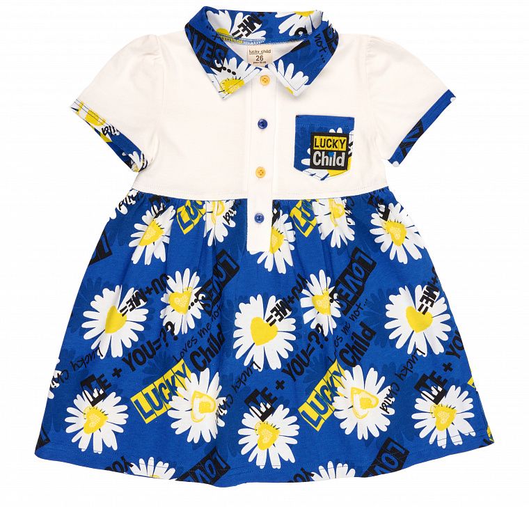Представляем классическое платье для девочки из материалов двух цветов: молочного и синего с принтом. В нём присутствуют все элементы классики: рукава-фонарики с контрастной оторочкой, отложной воротничок, планка с пуговицами, кармашек на груди и пышная юбочка. Платье из 100%-го хлопкового трикотажа высшего качества, принт не выцветет и не боится глажки. Для любителей классики – идеальный вариант наряда для девочки.