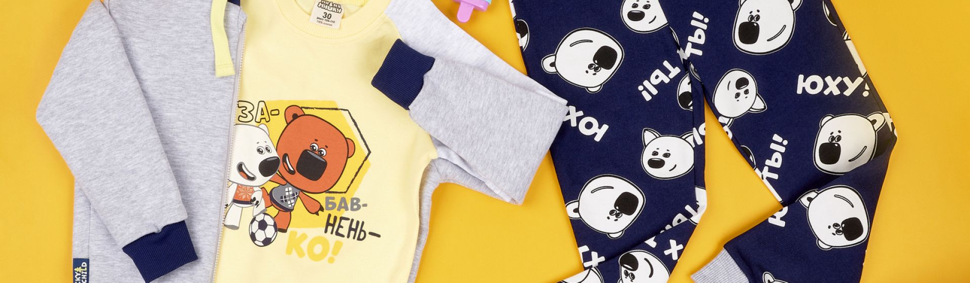 Если ваш ребенок фанат "МИ-МИ-МИШЕК", то обратите внимание на одноименную коллекцию Lucky Child. Ребенку точно понравится дизайн, а родителям - качество. В коллекции более 60 наименований, можно собрать целый гардероб с любимыми героями, и тогда каждое утро ваш ребенок будет собираться с удовольствием, а вы избежите «странных» сочетаний, так как все вещи из коллекции идеально комбинируются между собой.