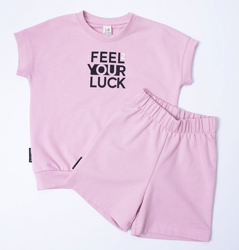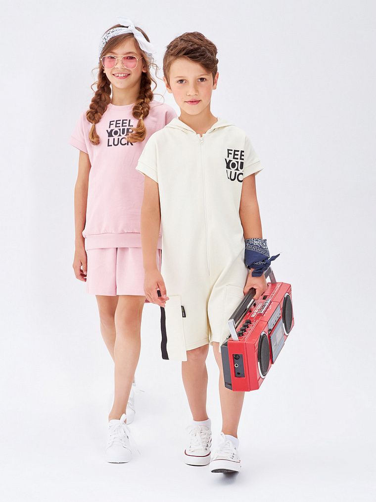 Детям, которые предпочитают комплекты, понравится набор из футболки и шорт. Он представлен в двух цветах – розовом и бежевом. Модно и стильно в нём будут выглядеть и нежные принцессы, и озорные мальчуганы. Фишка комплекта в том, что его можно надеть как готовый костюм или разбавить другими вещами из коллекции «Оверсайз». Например, мальчикам можно сменить бежевую футболку на синюю, а девочкам вместо розовой надеть терракотовую или серую. И футболка, и шорты из комплекта отлично сочетаются с моделями из других девчачьих и мальчиковых коллекций Lucky Child.